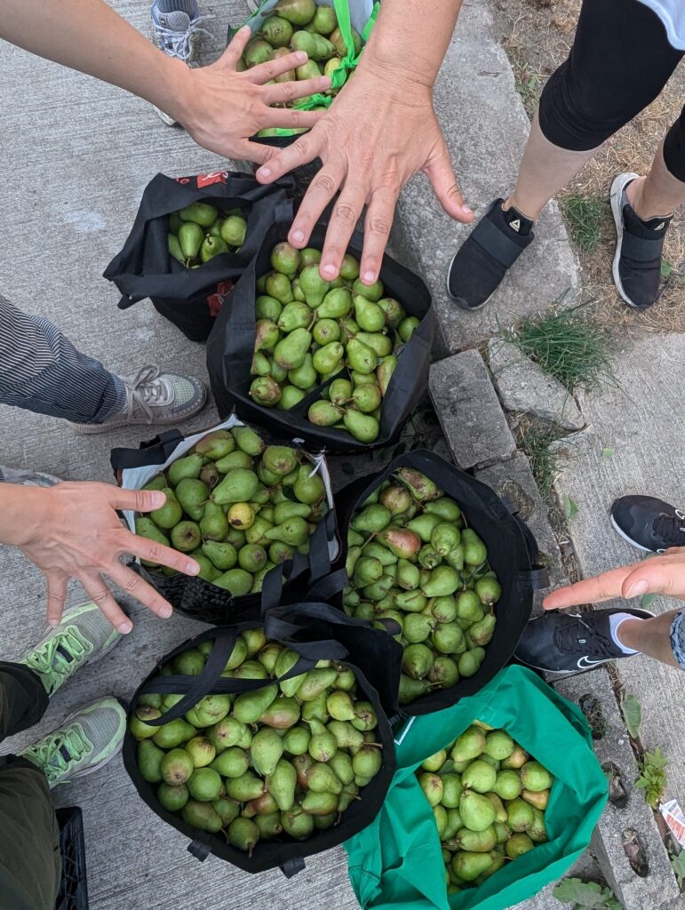 “I love being able to see different parts of the city in ways that you don’t normally get to experience and helping facilitate that experience for others. It’s really rewarding to have such a great outdoor community-building activity that benefits participants, has a net positive impact for the tree owner, and even goes further into community support by sharing the harvest. Being part of the work to create and maintain a circular economy with otherwise unused resources in the city is a really unique opportunity.” – Alison Mann, Pick Leader since 2023